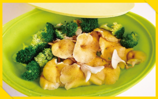 スチーマーで蒸したタモギ茸には、爽やかな香りのレモンバームのハーブティーが合います。